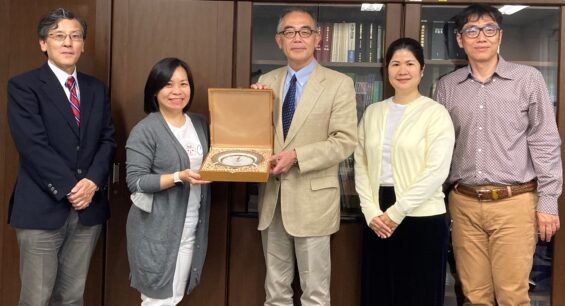 5月29日、タイ国立開発行政研究院(NIDA)言語・コミュニケーション研究科のカサマー研究科長、ジラーパー副研究科長、テーウィット助教が来訪し、江藤研究科長、大河原国際交流委員会長と面談を行いました。