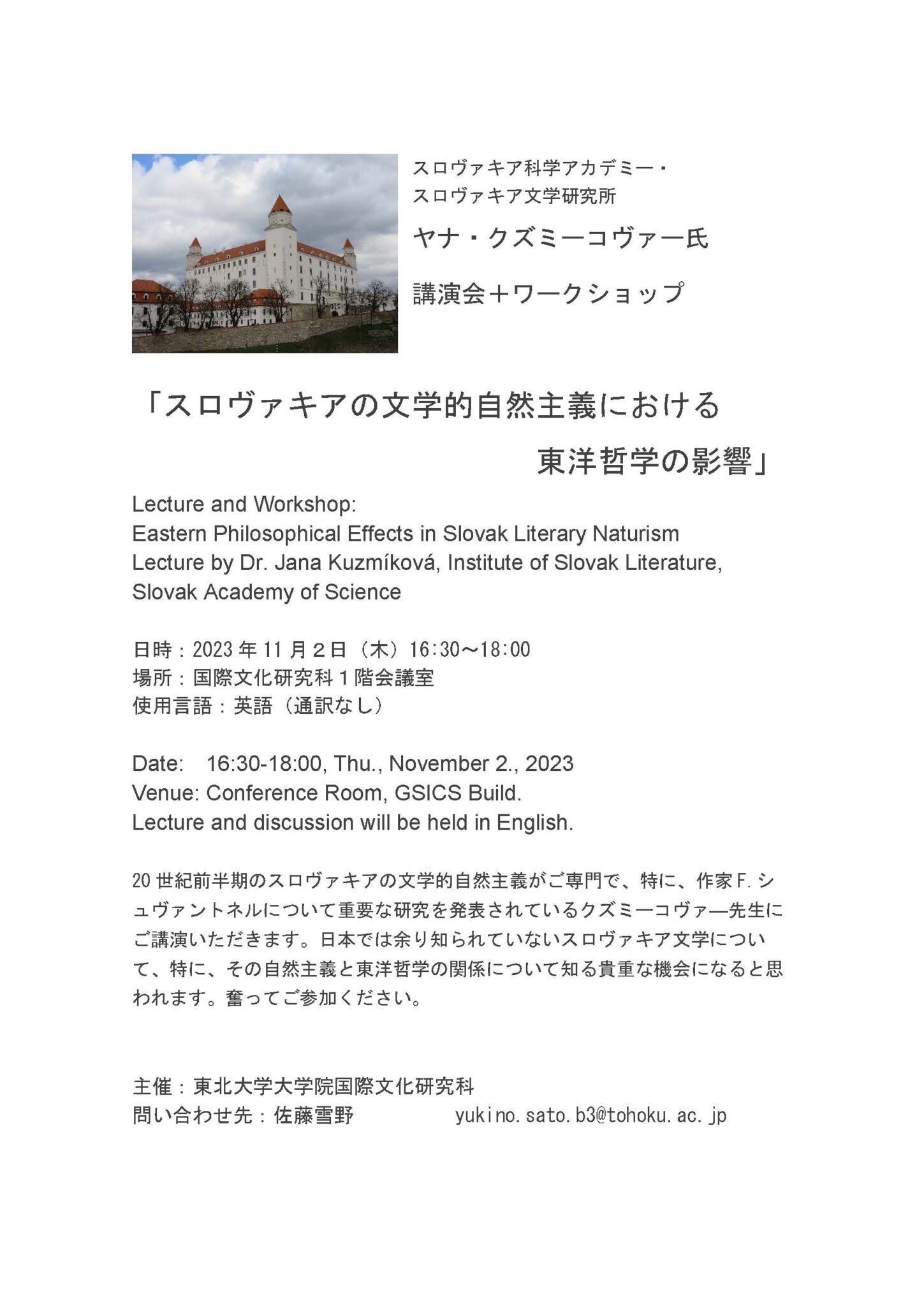 ヤナ・クズミーコヴァー氏講演会+ワークショップ 「スロヴァキアの文学的自然主義における東洋哲学の影響」