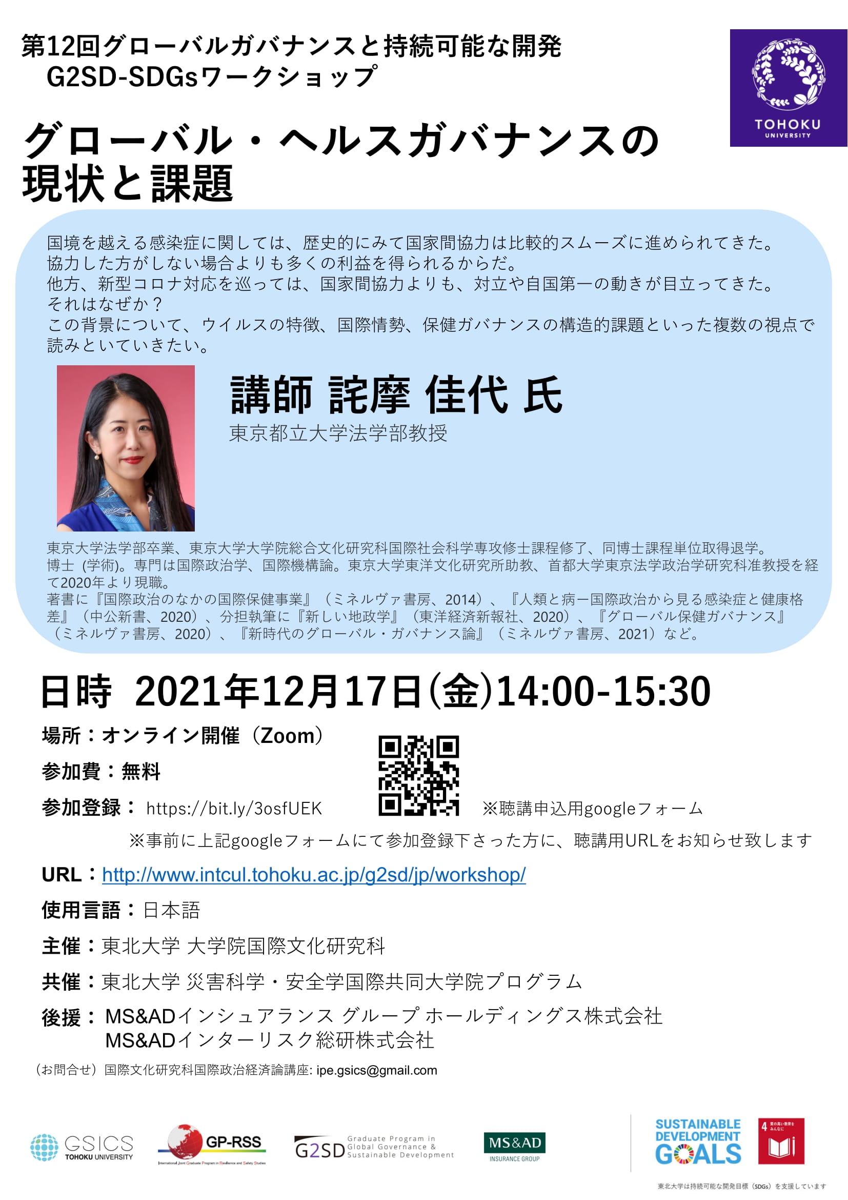 第12回 グローバルガバナンスと持続可能な開発 G2SD−SDGsワークショップ【グローバル・ヘルスガバナンスの現状と課題】