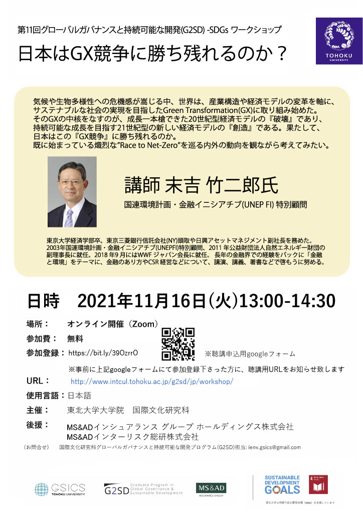 第11回 グローバル・ガバナンスと持続可能な開発(G2SD)−SDGsワークショップ【日本はGX競争に勝ち残れるのか?】