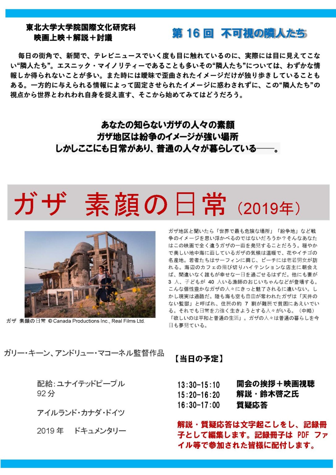 第16回「不可視の隣人たち」映画上映会+解説+討議『ガザ 素顔の日常』