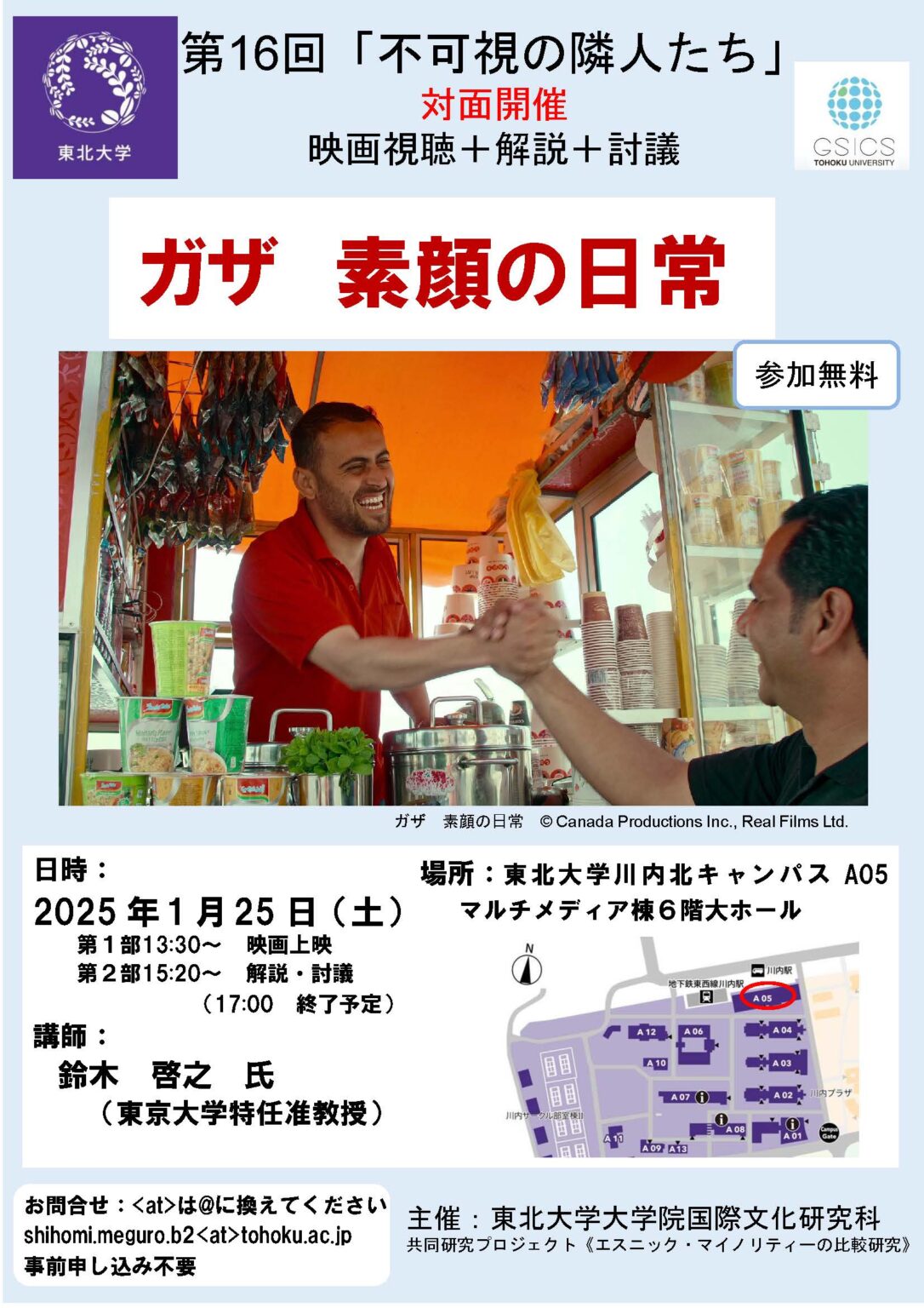 第16回「不可視の隣人たち」映画上映会+解説+討議『ガザ 素顔の日常』を久しぶりに対面で開催いたします。