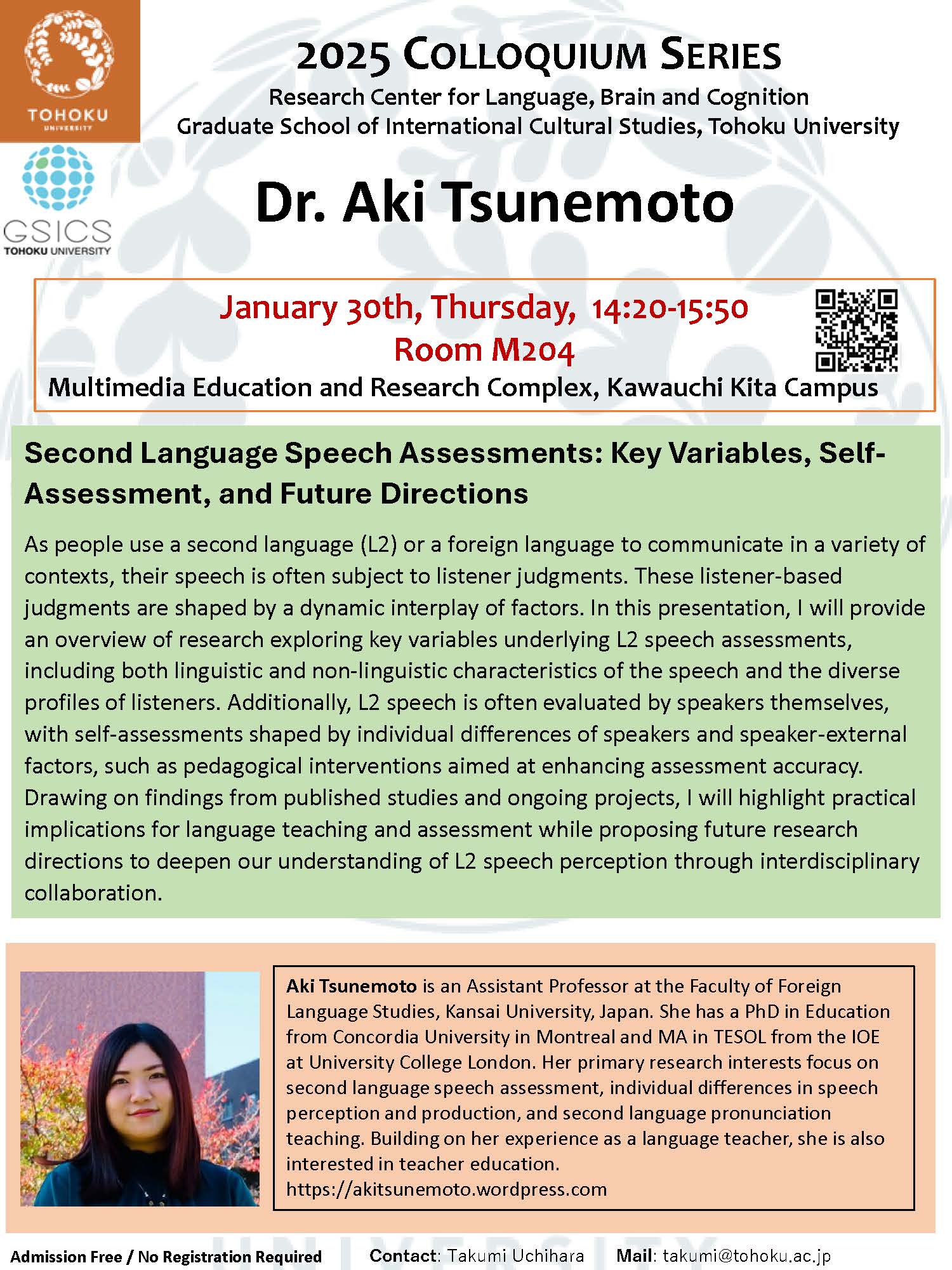 主 催:東北大学国際文化研究科附属言語脳認知総合科学研究センター
