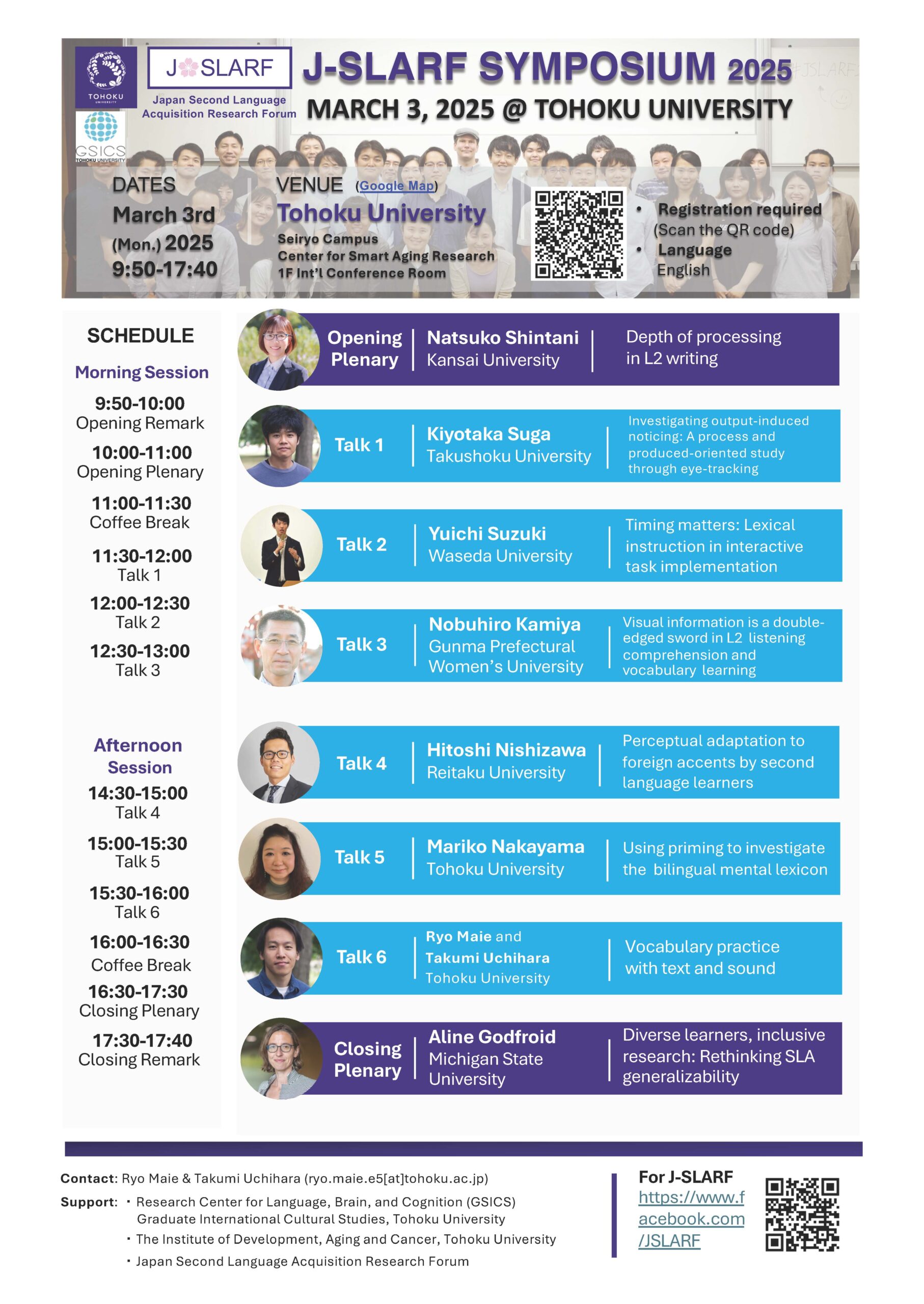 共催:東北大学加齢医学研究所、Japan Second Language Research Forum (J-SLARF)
