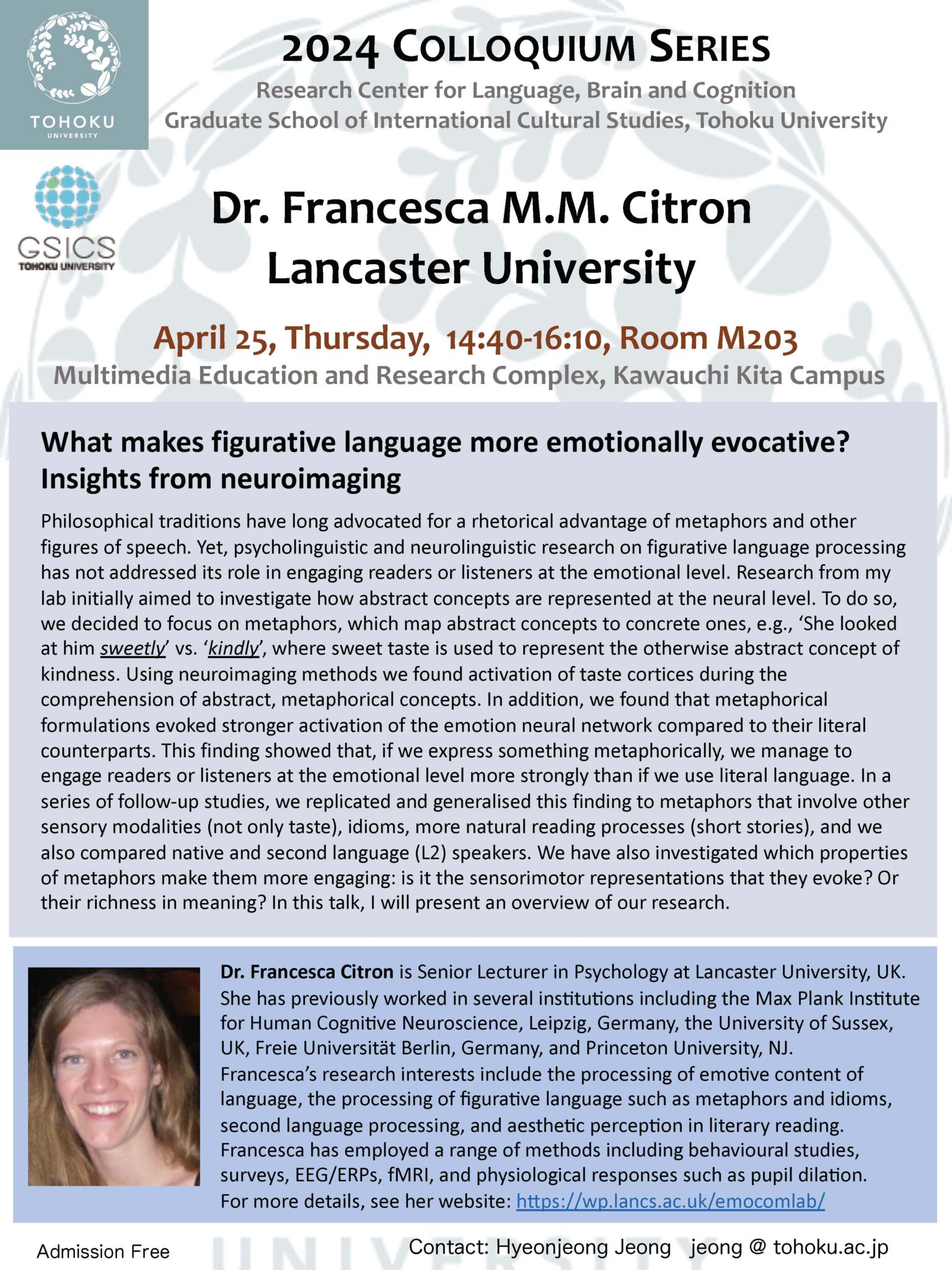 講 師:Dr. Francesca M.M. Citron, Lancaster University
