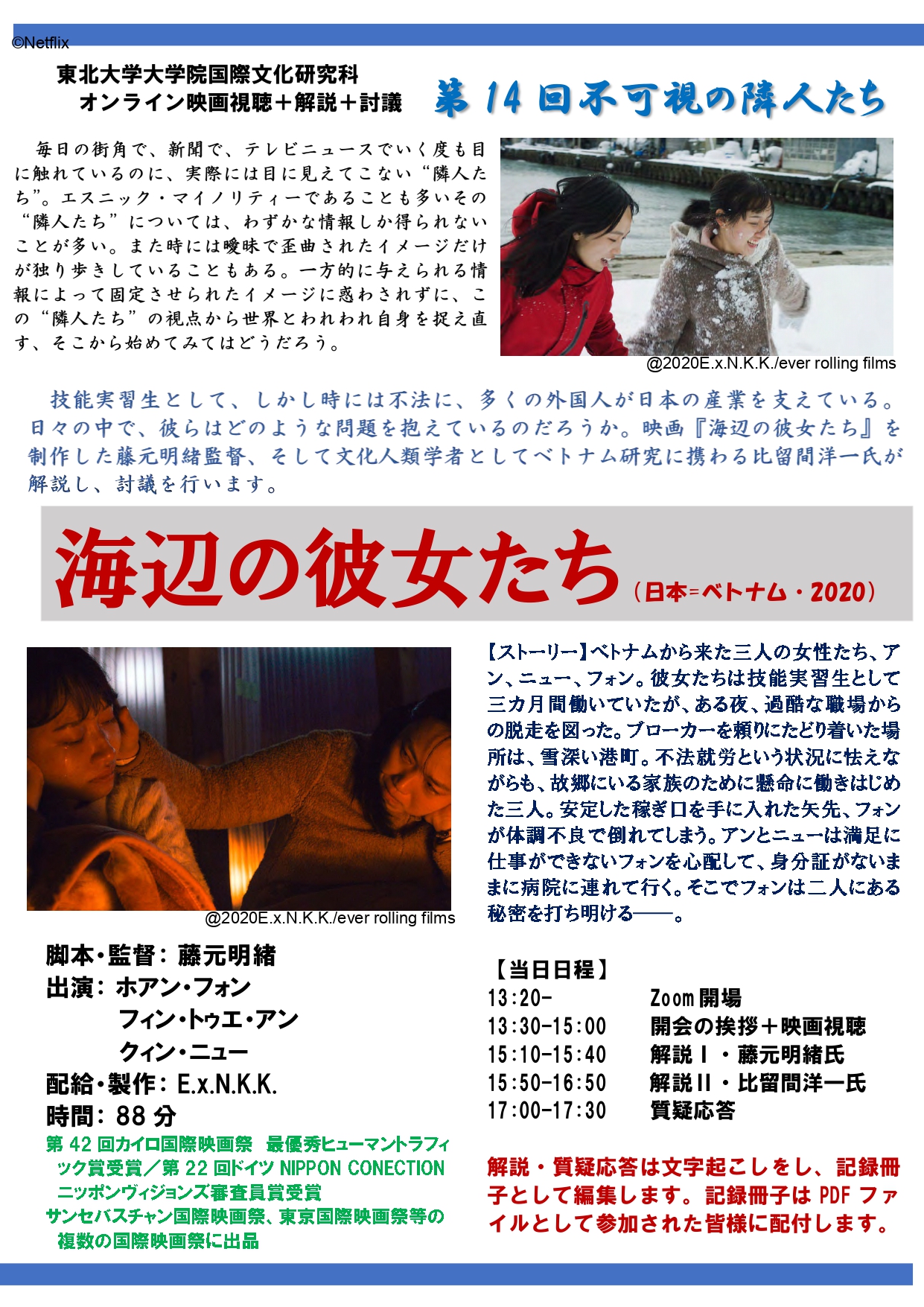 第14回“不可視の隣人たち”映画上映会+解説+討議『海辺の彼女たち』