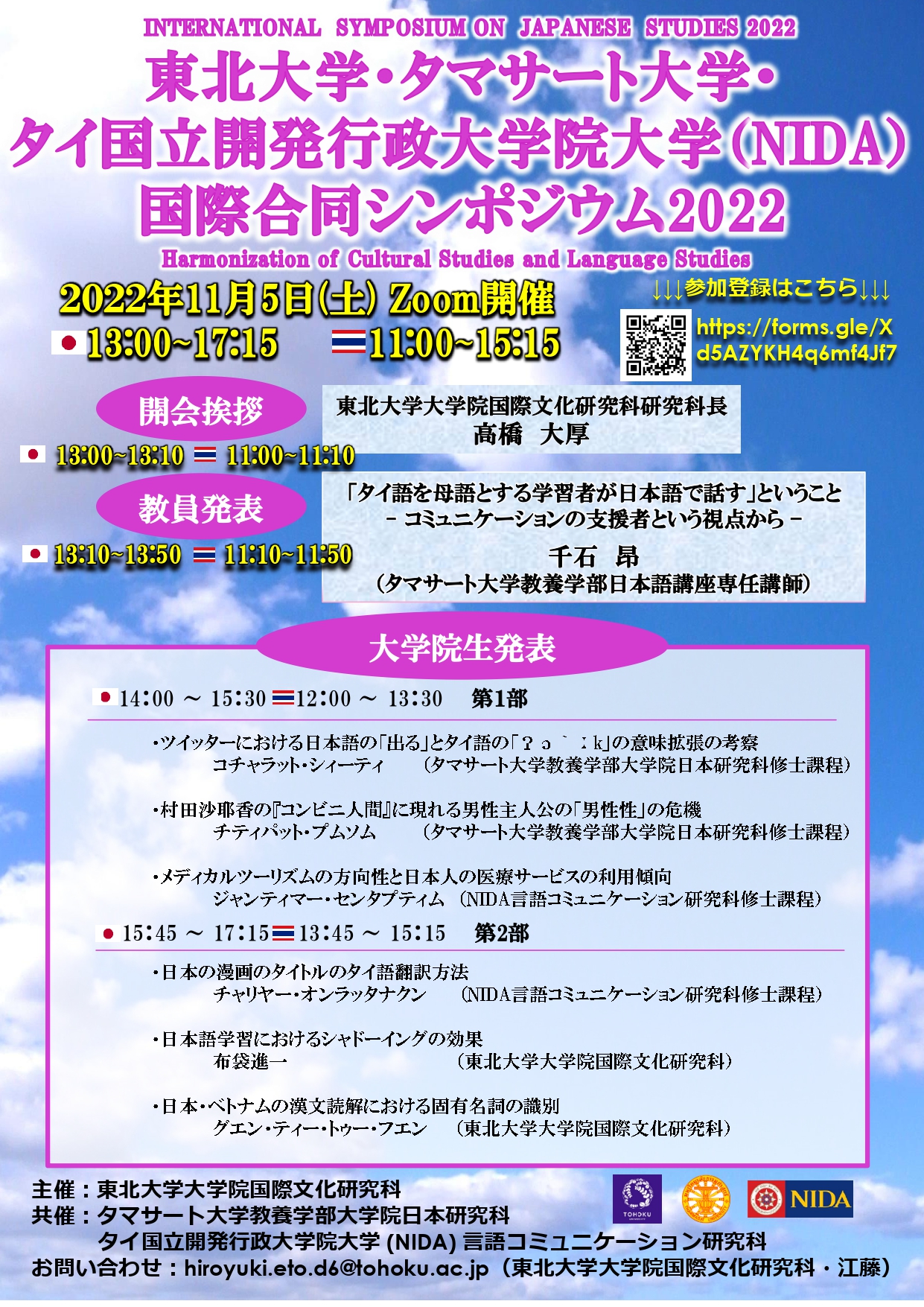 東北大学・タマサート大学・NIDA国際合同シンポジウム2022 Harmonization of Cultural Studies and Language Studies