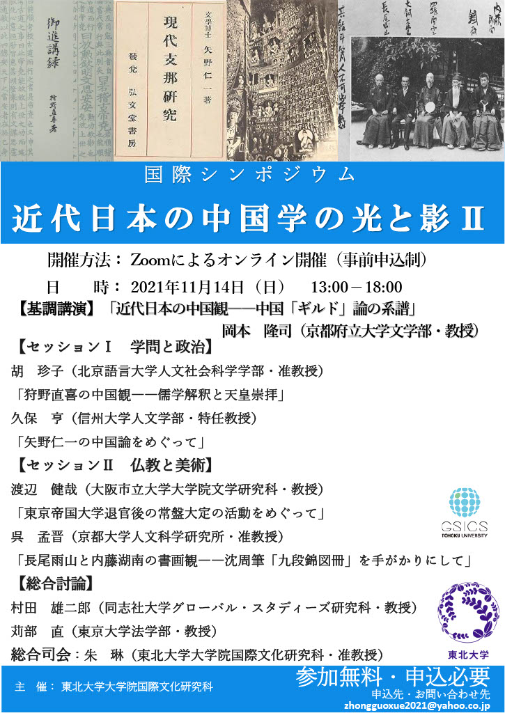 国際シンポジウム「近代日本の中国学の光と影Ⅱ」開催のお知らせ
