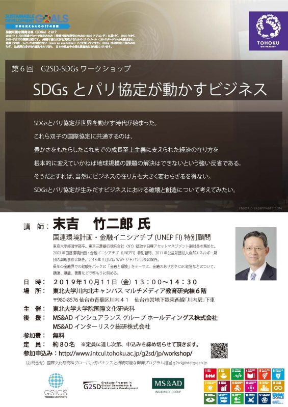 末吉 竹二郎氏講演『SDGsとパリ協定が動かすビジ ネス』(第6回G2SD−SDGsワークショップ)