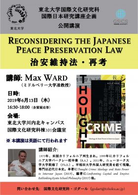 国際日本研究講座・公開講演「Reconsidering the Japanese Peace Preservation Law(治安維持法・再考)」