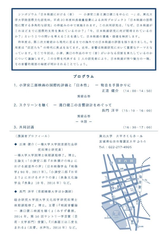 シンポジウム「日本映画における<音>―小津安二郎と溝口健二を中心に―」