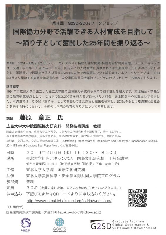 第4回G2SD-SDGsワークショップ「国際協力分野で活躍できる人材育成を目指して」について