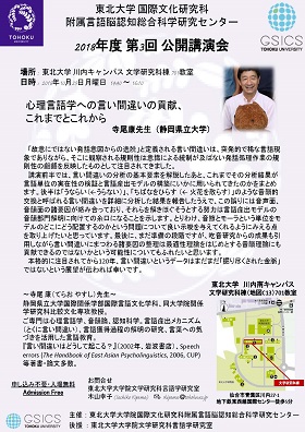 イベント名:附属言語脳認知総合科学研究センター 第3回公開講演会「心理言語学への言い間違いの貢献、これまでとこれから」
