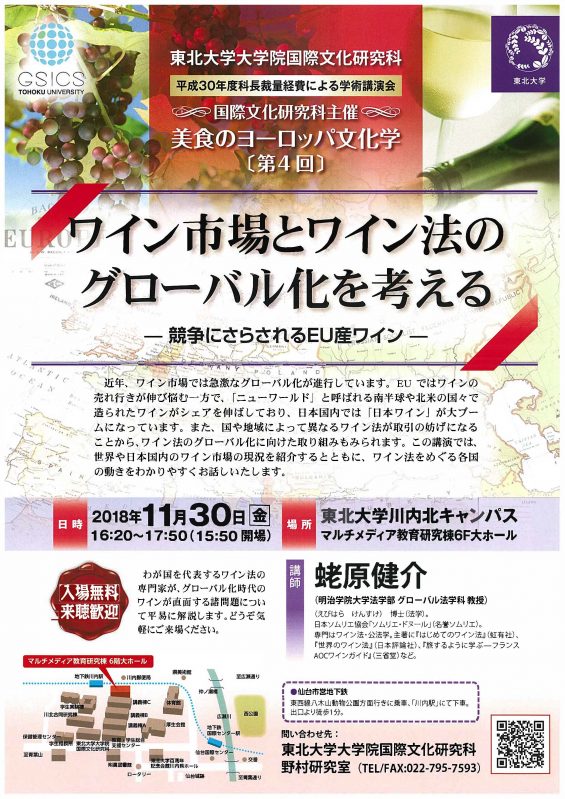 イベント名:(第4回)美食のヨーロッパ文化学「ワイン市場とワイン法のグローバル化を考える-競争にさらされるEU産ワイン-」