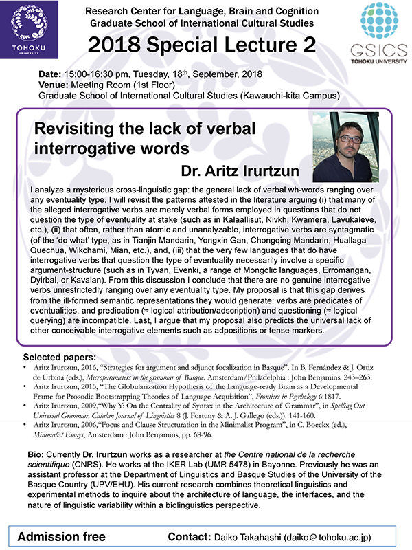 主催・共催:東北大学国際文化研究科附属言語脳認知総合科学研究センター