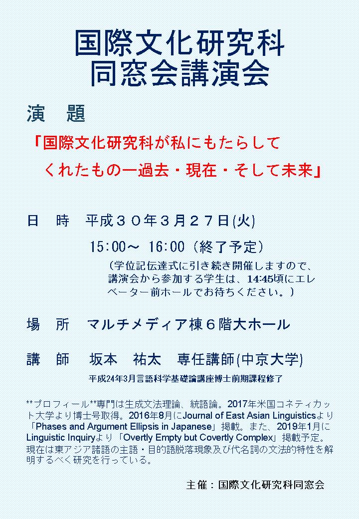 国際文化研究科 同窓会講演会