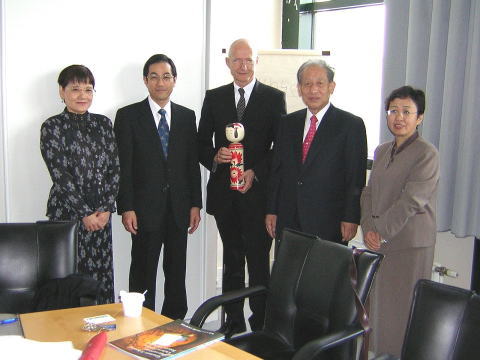 同日の午後には,市役所から近いところにあるレンヌ国際会館に場所を移して,姉妹都市協議が行われました。ここでは,ロズリーヌ・ルフランソワ助役はじめ,レンヌ市国際交流課のマリー=フランソワーズ・ケロックさん,国際会館副館長のクリスティアヌ・ジュゲさん,レンヌ市教育課主任で姉妹都市委員会委員長も務めるマリー=アンドレ・ブリアンさん,民間団体であるブルターニュ・ジャポン協会の会長マリー=アニック・メヴェルさん,同じく民間団体の「Shimaitoshi Sendai」のクロディーヌ・ルーさん等の参加のもと,今後の具体的な交流について意見交換がなされました。結論として,2007年の姉妹都市締結40周年記念行事を「仙台におけるフランス・レンヌ年」と名付けて仙台で1年間を通して行うこと,それに向けて2005年からさっそくプレ企画を立てていくことが決められました。