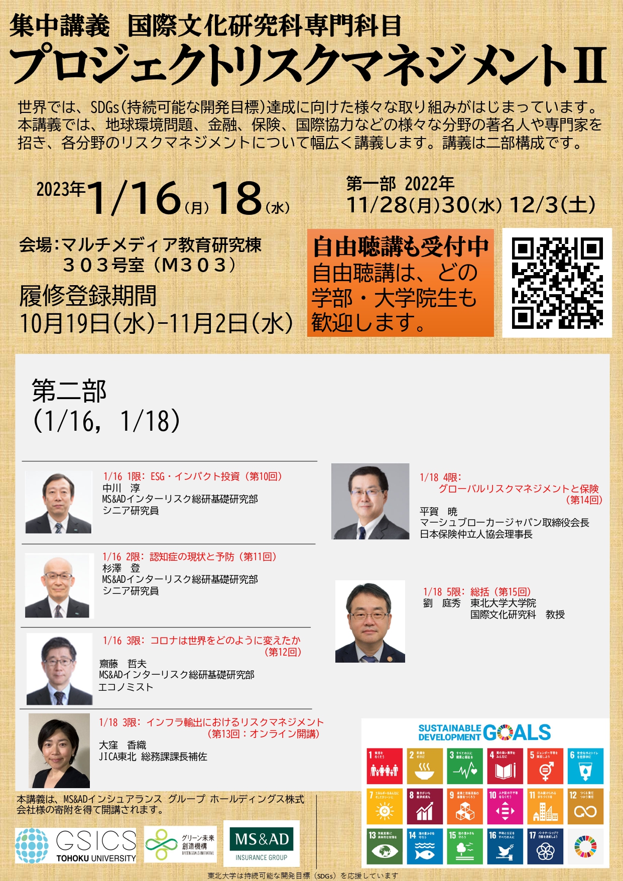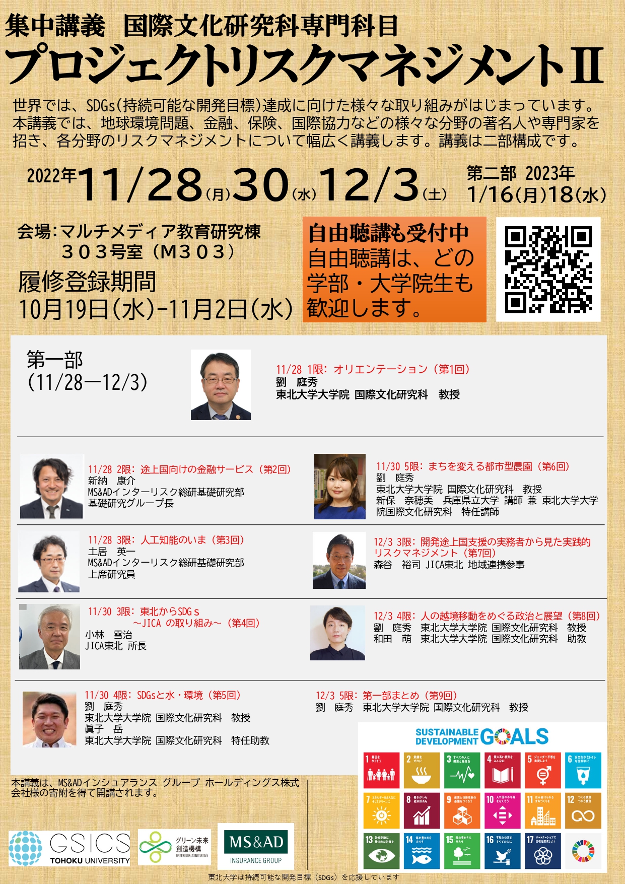 集中講義履修登録&自由聴講受付中 プロジェクトリスクマネジメントII