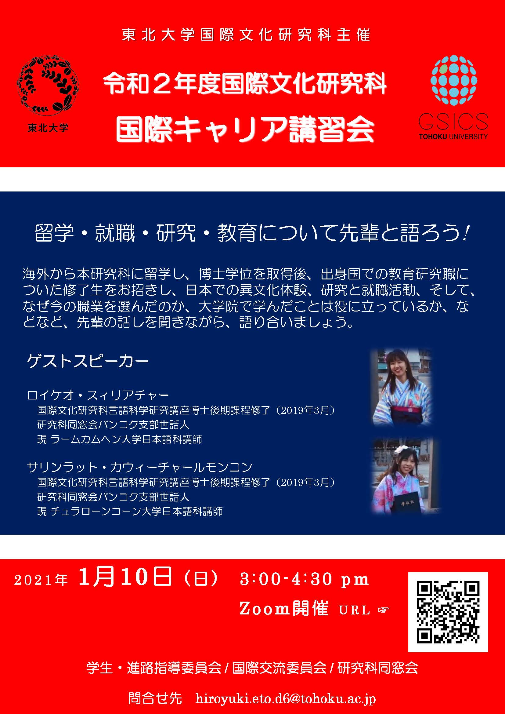 主催:東北大学大学院国際文化研究科学生・進路指導委員会、国際交流委員会、同窓会